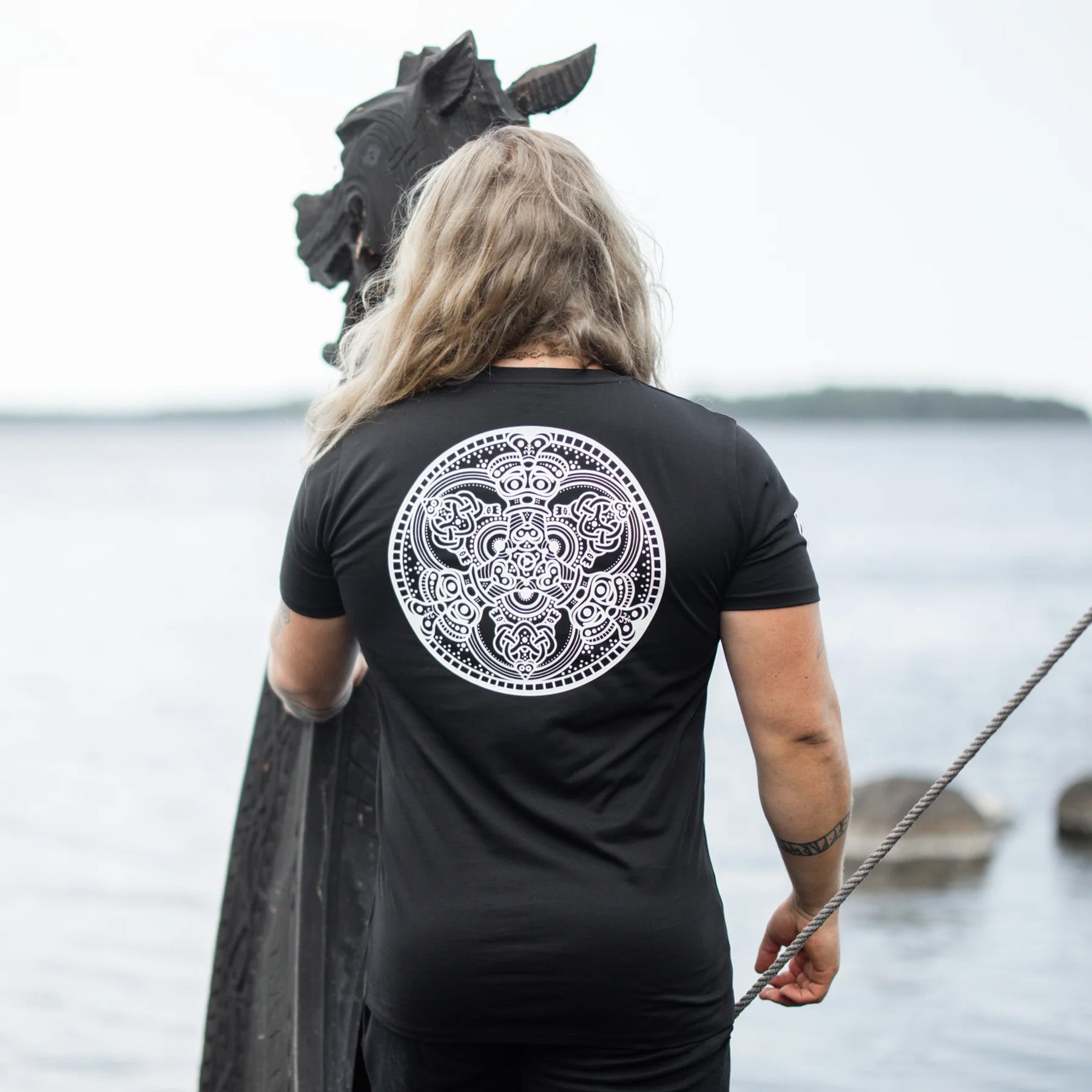 Die Motive basieren alle auf Funden aus der Wikingerzeit. Die Motive auf dem Rücken und auf der Brust sind der Vårby-Fibel nachempfunden, die hier in Schweden gefunden wurde.