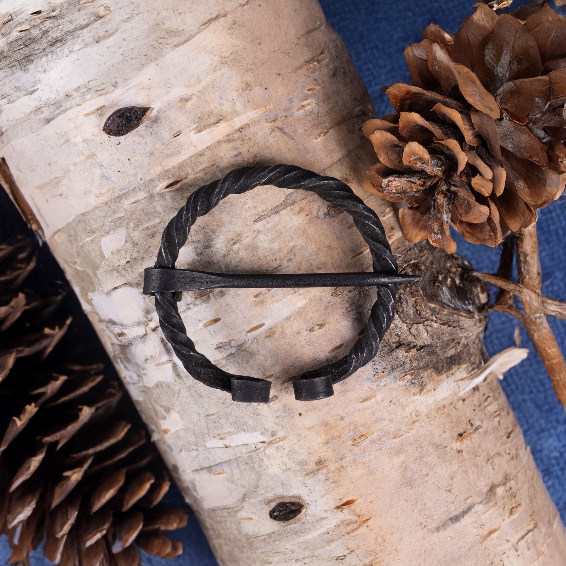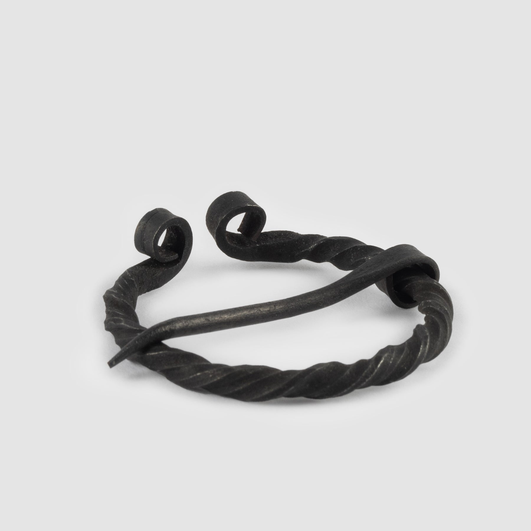 Eine Fibel ist eine Anstecknadel oder Brosche, mit der die Wikinger ihre Kleidungsstücke befestigten. Diese hier ist aus gedrehtem Eisen handgeschmiedet und eignet sich gut für Tuniken, Hemden und dünne Umhänge.