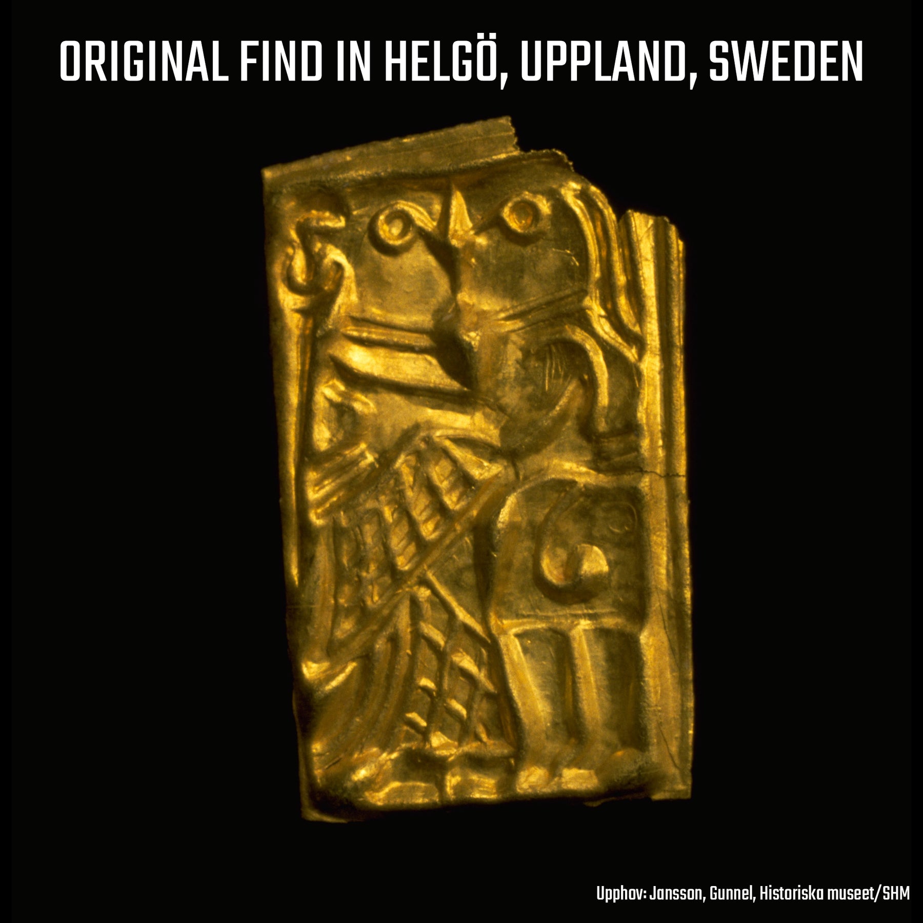 Anhänger aus massiver Bronze, der ein sich küssendes Liebespaar darstellt. Er basiert auf einem Original aus den 600er Jahren, das in Helgö in Uppland, Schweden, gefunden wurde. Das Original wurde als "Guldgubbe" hergestellt - ein dünnes Stück geschlagenes Gold, das für Opfergaben verwendet wurde.