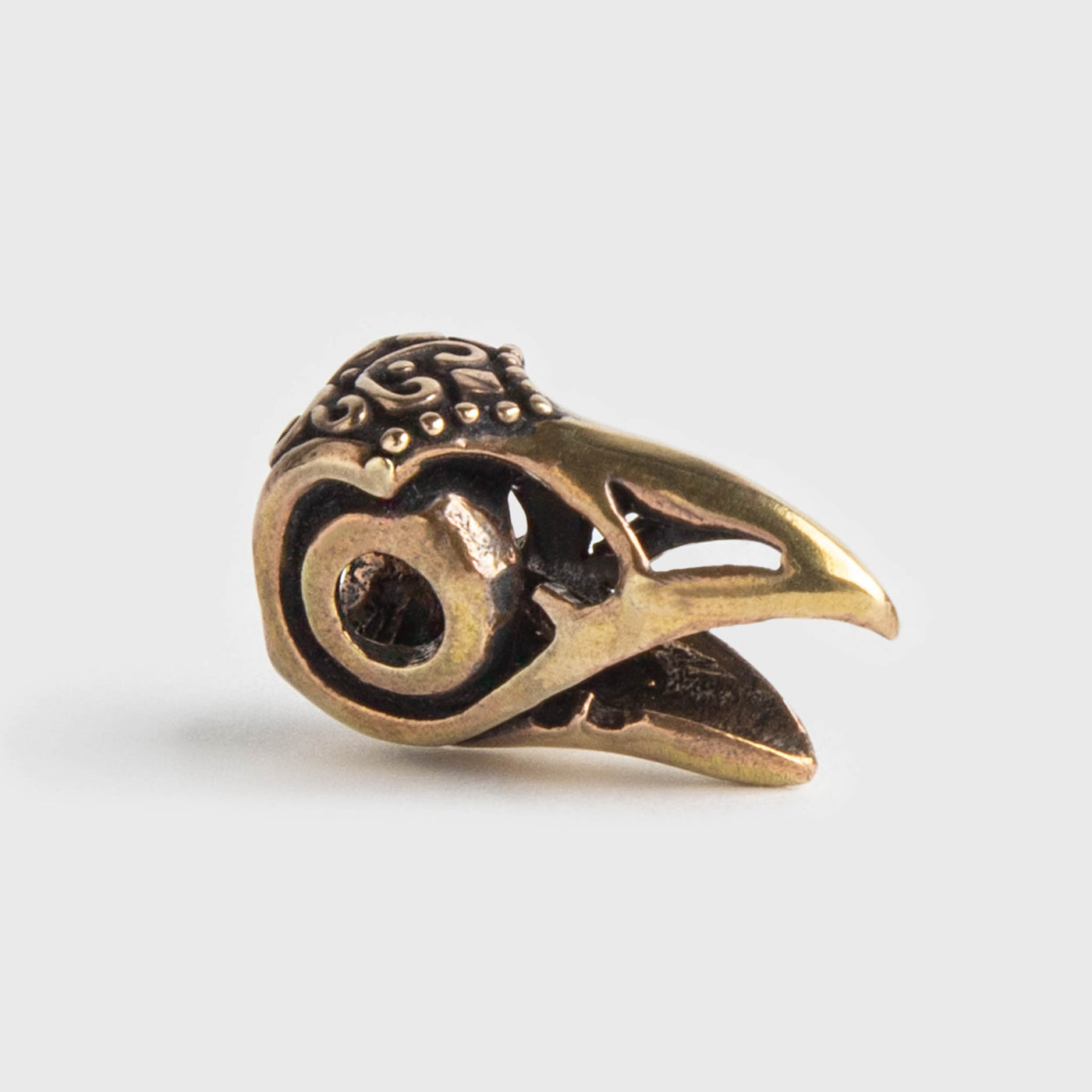 Ein großer Bartring aus Bronze in Form eines Rabenkopfes. Verwenden Sie zwei Ringe, um Huginn und Muninn, die Raben des Gottes Odin, darzustellen.