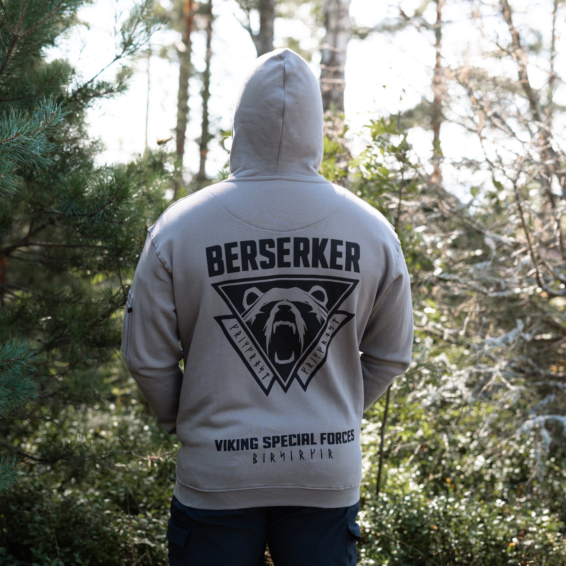 Der Berserker war ein Wikingerkrieger, der in der Lage war, im Kampf in einen Zustand überwältigender Wut zu verfallen, der oft mit dem eines wilden Tieres, z. B. eines Bären, verglichen wurde (Berserker bedeutet aus dem Altnordischen tatsächlich Bärenhemd). Dies verlieh ihm übermenschliche Kraft und die Fähigkeit, Schmerz und Schaden zu ignorieren. Die Wirkung war so groß, dass der Begriff "Berserker" auch heute noch verwendet wird. Wir erwarten nicht, dass Sie in diesem Hoodie Berserker werden - aber wir erwarten, dass Sie gut aussehen.