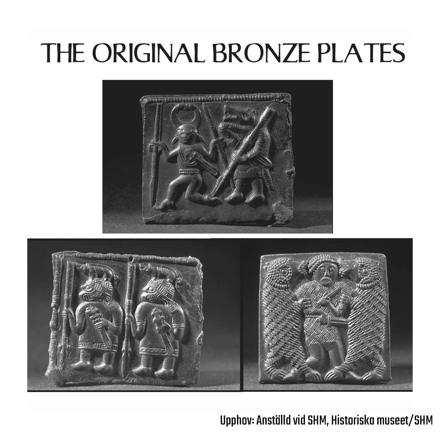 Leather bracelet with five plates based on the ancient Torslunda bronze plates. They date to the 550-800 AD and display scenes from tales and mythology. The plates in the bracelet are: