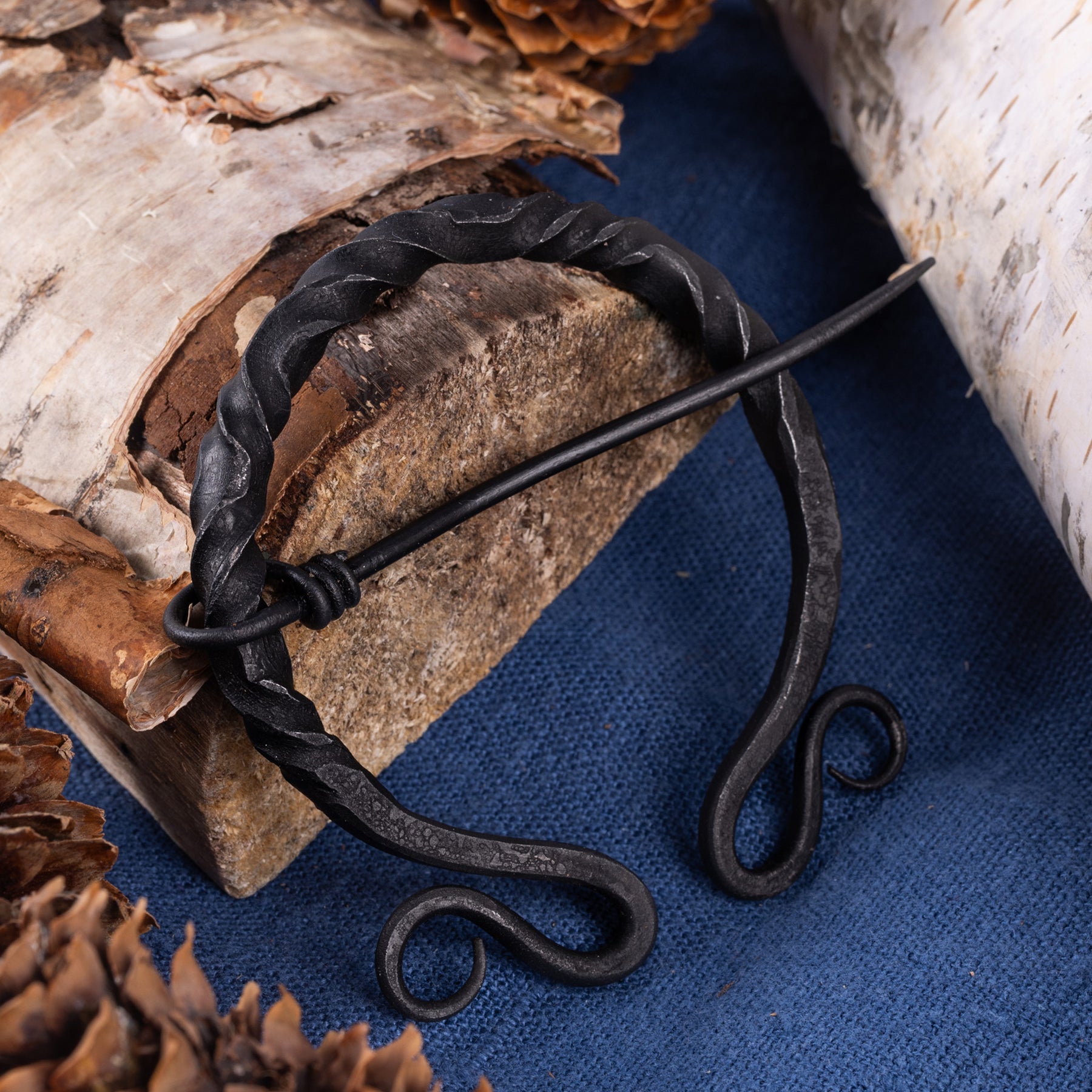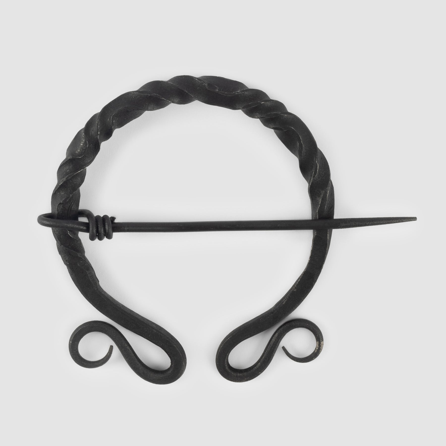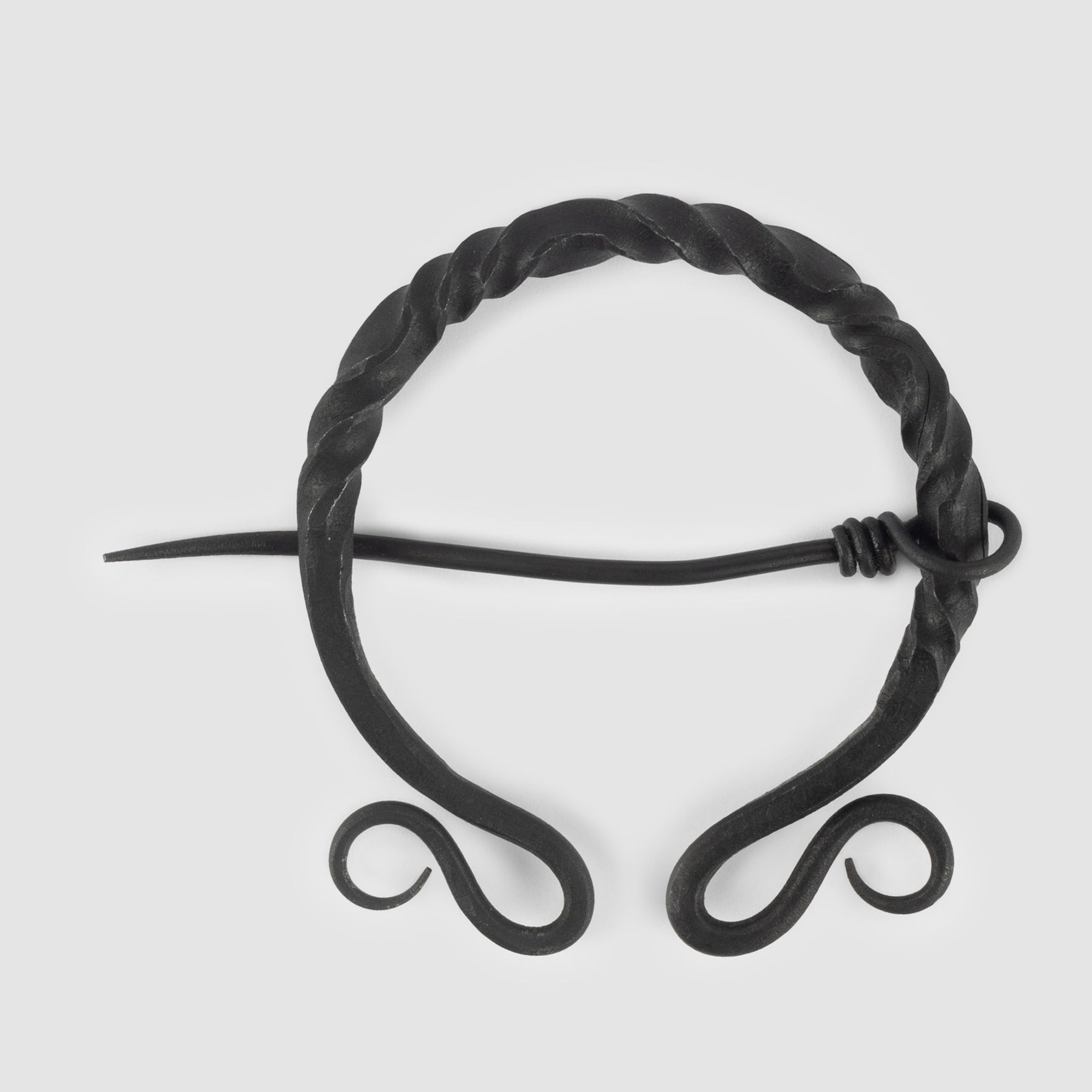 A fibula is a pin, or brooch, that the Vikings used to fasten their garments with. This one is hand-forged in twisted iron and works well for cloaks and other larger garments.