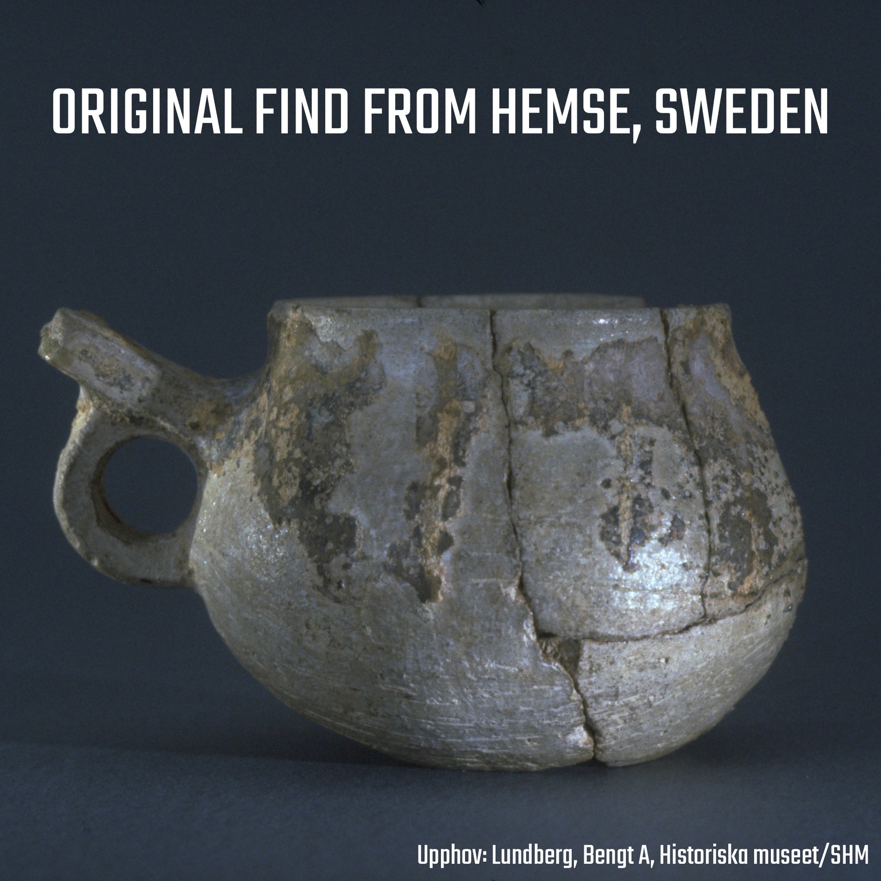 This Viking Age drinking vessel is based on a find from Hemse on Gotland, Sweden. It has a unique design with a handle which is rarely seen in Viking Age finds. The vessel is wholly hand-made without a potter’s wheel, just as the original was made over 1000 years ago.