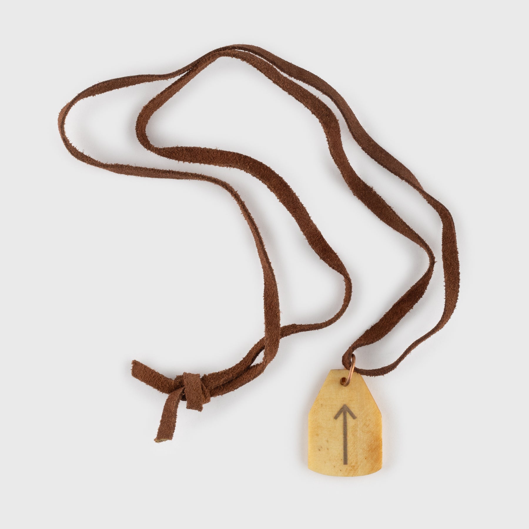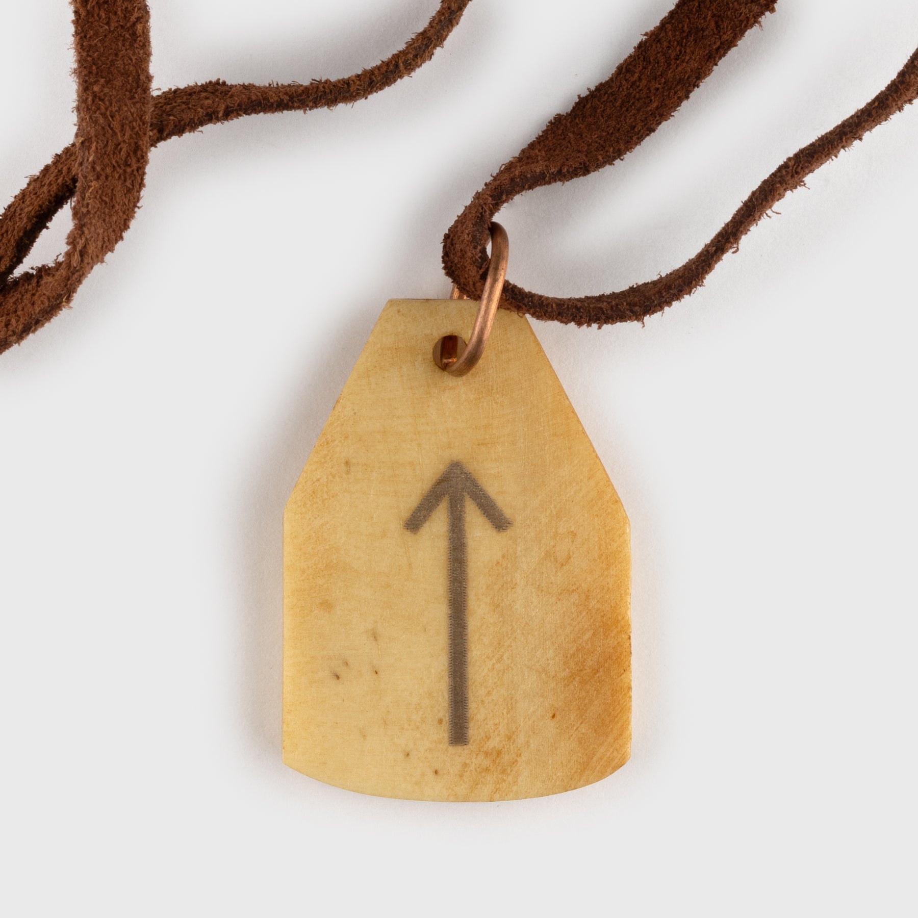 Handmade bone amulet with the Tyr rune that represents Týr, Norse god of war and heroic glory. The rune is also known as the ‘victory rune’. It is mentioned in old rune poems how a warrior carving the rune into his weapon would dedicate it to Týr. Doing so would strengthen the weapon and grant a favourable outcome in battle.
