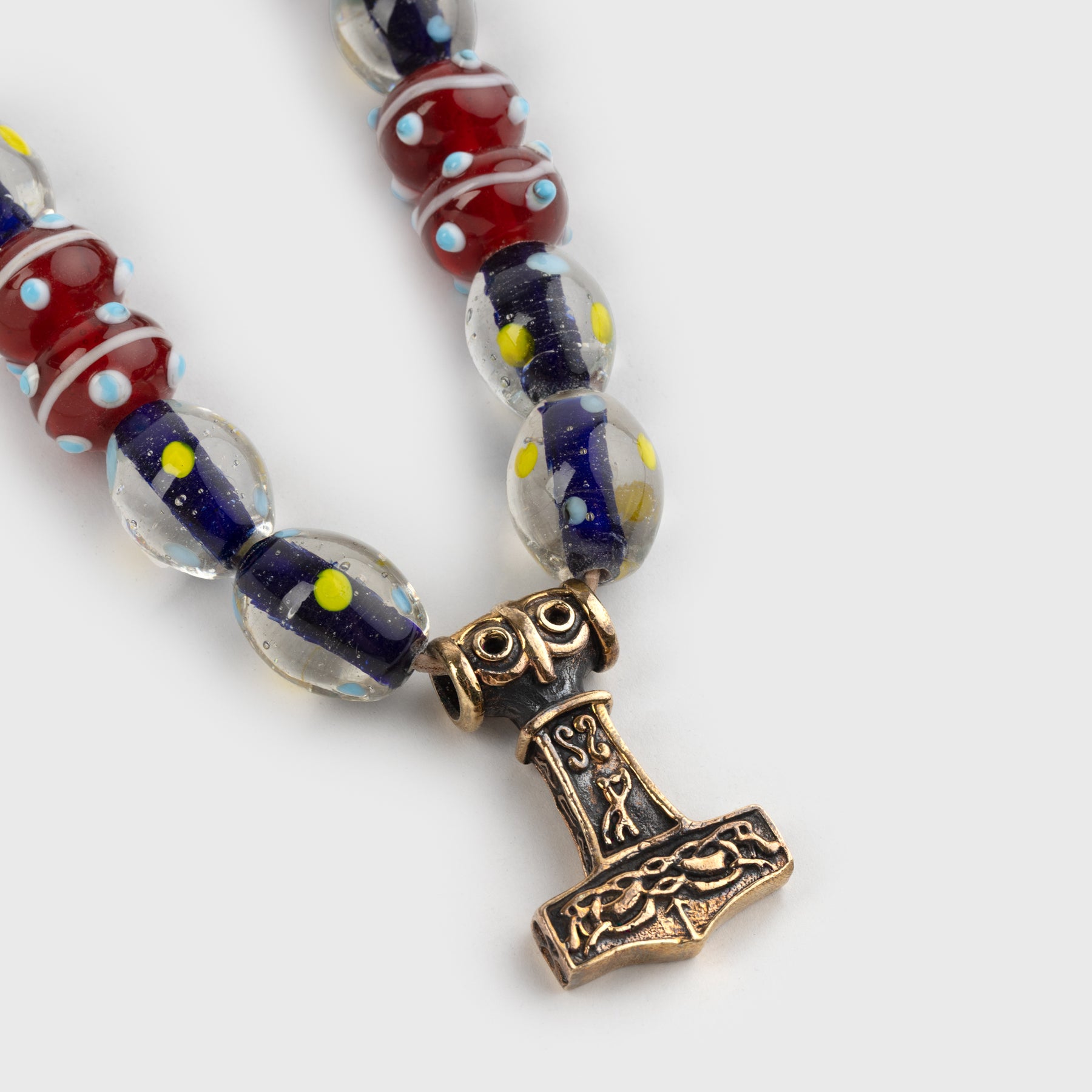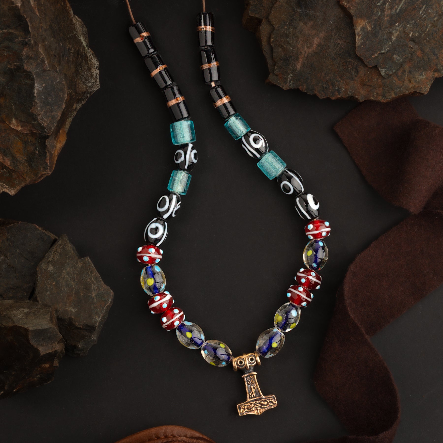 • Handmade beads and a bronze Thor's hammer