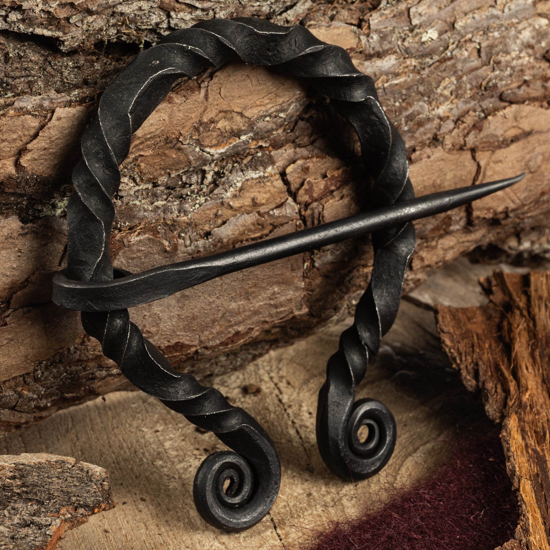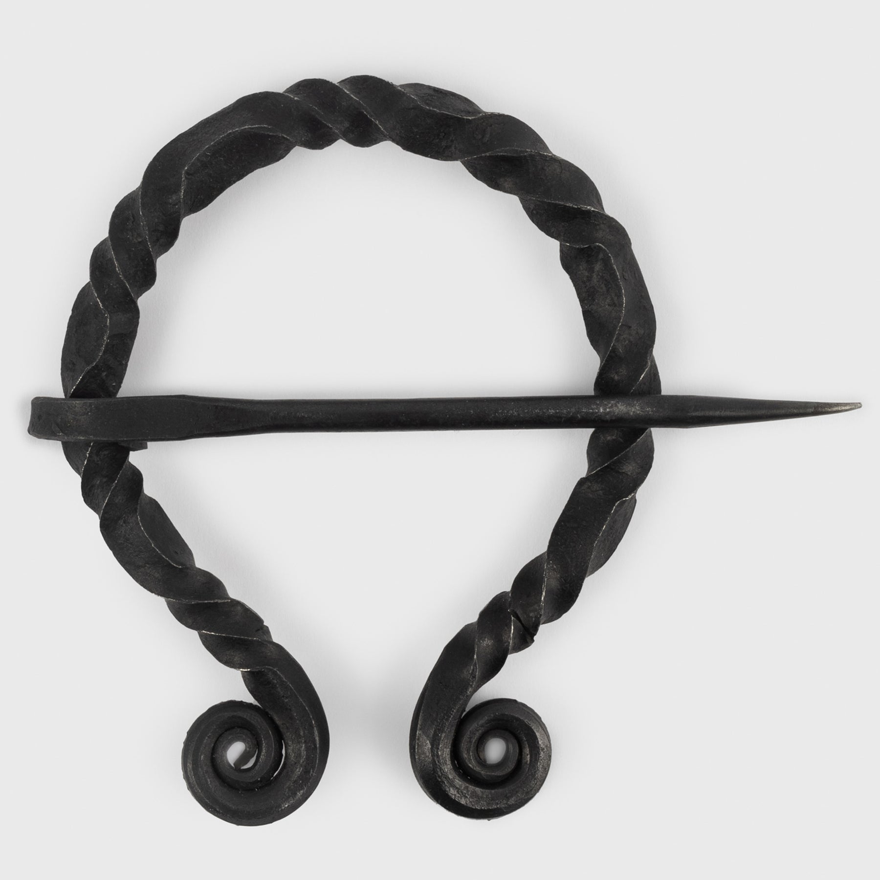 Eine Fibel ist eine Anstecknadel oder Brosche, mit der die Wikinger ihre Kleidungsstücke befestigten. Diese hier ist aus gedrehtem Eisen handgeschmiedet und eignet sich gut für Umhänge und andere größere Kleidungsstücke.