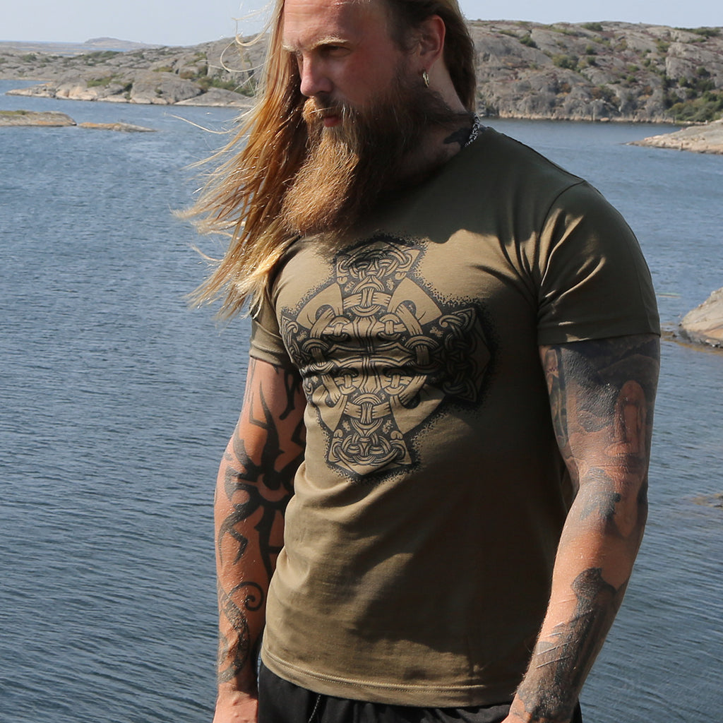 You can feel the quality of this premium t-shirt the first time you put it on, and you will enjoy it for years to come. The fabric used is exceptionally comfortable and something only used in the finest of garments. It is handprinted in Sweden with a Mjolnir wheel. It consists out of four Hammer of Thor symbols facing outwards from the center.