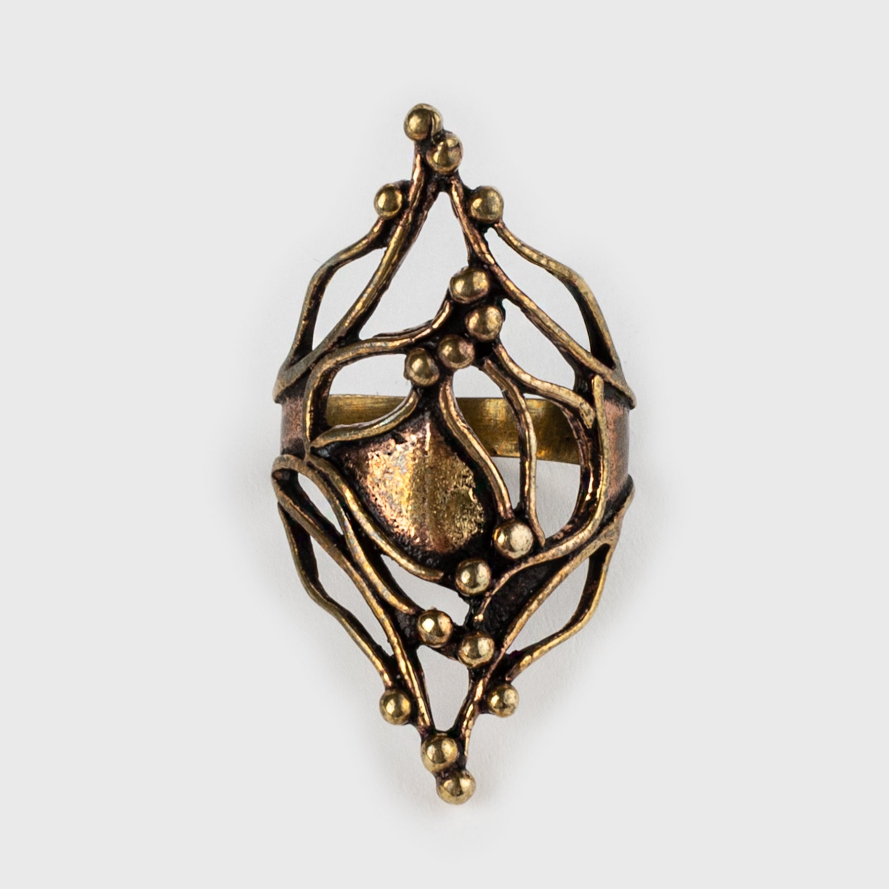 Ein großer Ring aus massiver Bronze mit fließenden Formen, der den unteren Teil des Fingers schön bedeckt.