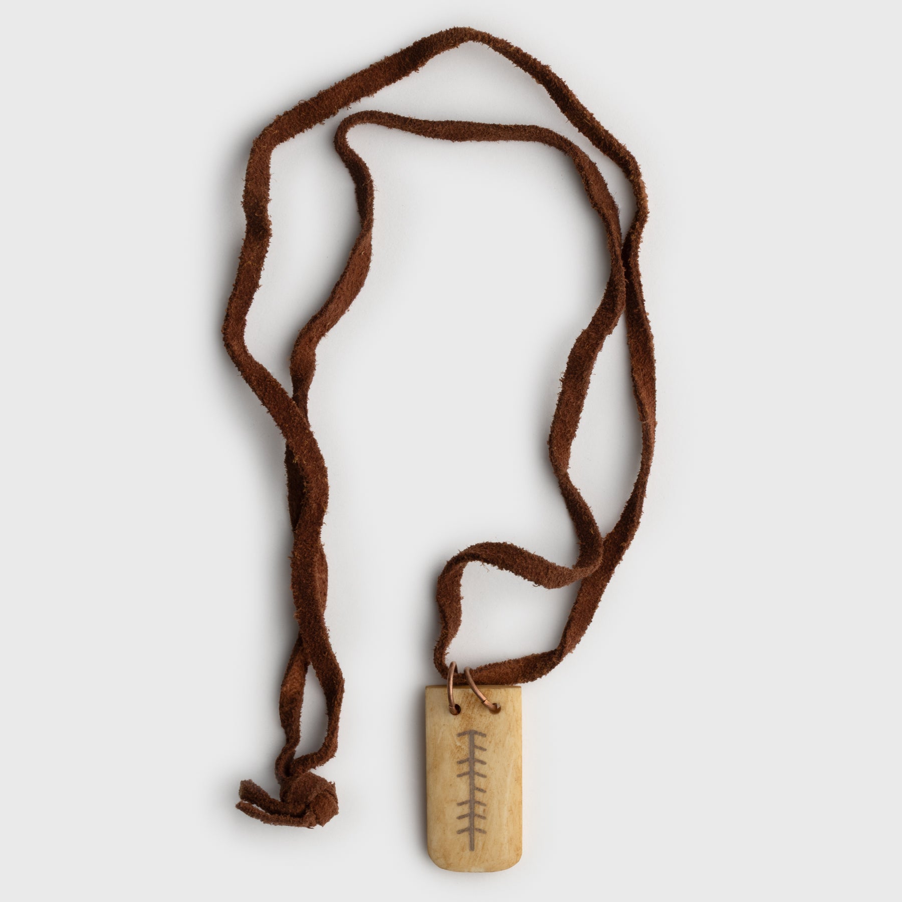 Handgefertigtes Knochenamulett mit gestapelten Tiwaz-Runen - ein magisches Muster, das die Siegchancen erhöhen soll.