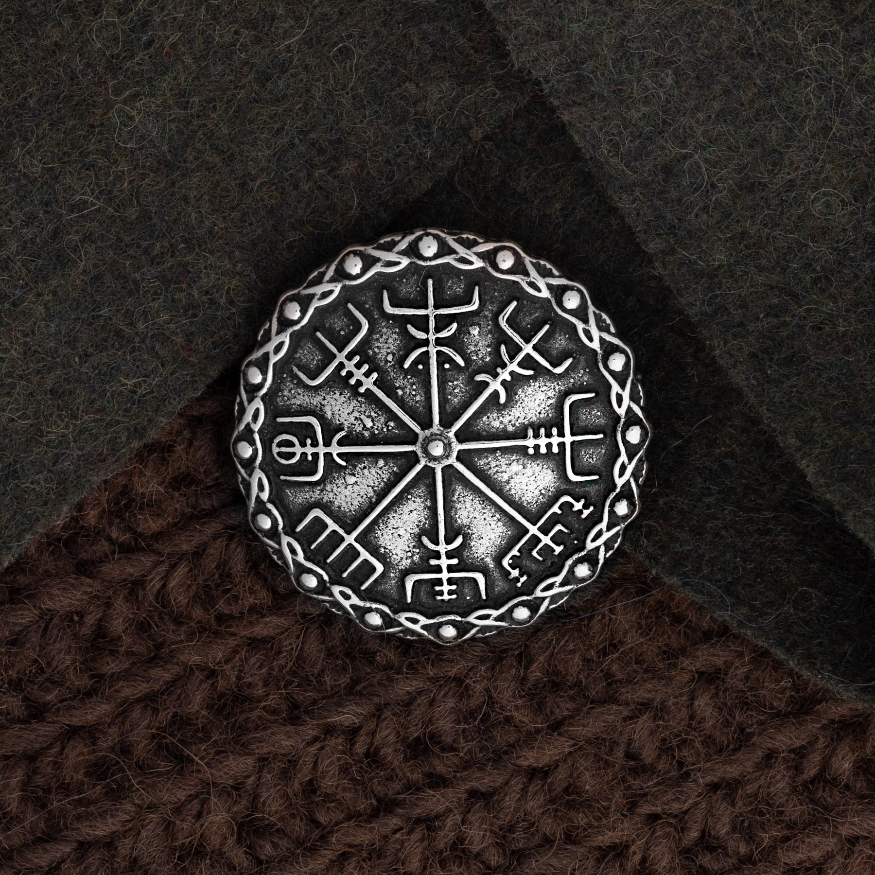 Schöne Brosche aus massivem Sterling Silber mit dem Vegvisir Symbol.