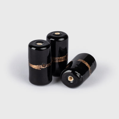 Drei Wikinger-Glasperlen. Sie wurden traditionell durch Aufwickeln von Schichten aus geschmolzenem Glas auf einen Metallstab hergestellt. Glasperlen wurden sowohl von Männern als auch von Frauen häufig für Halsketten verwendet. Frauen trugen sie auch zwischen Schalenfibeln hängend.
